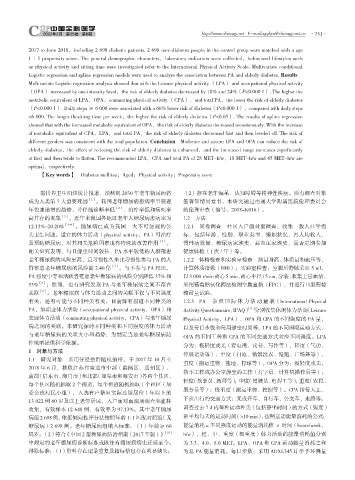 群罹患老年糖尿病的风险高 2.40 倍 [7] 。与不参与 PA 相比, 计算体质指数(BMI);实验室检查:空腹后静脉采血 5 ml,