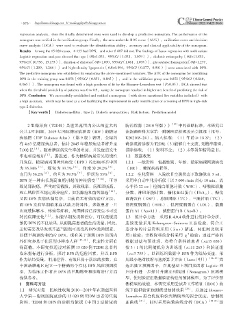 资料,T2DM 和 DPN 的诊断均依据《中国 2 型糖尿病 正曲线 [21] ,同时采用决策曲线分析(DCA) [22-23] 预