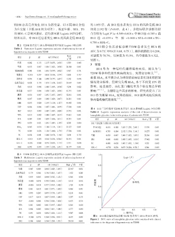 表 3 T2DM 患者发生 HUA 影响因素的多因素 Logistic 回归分析 1.0