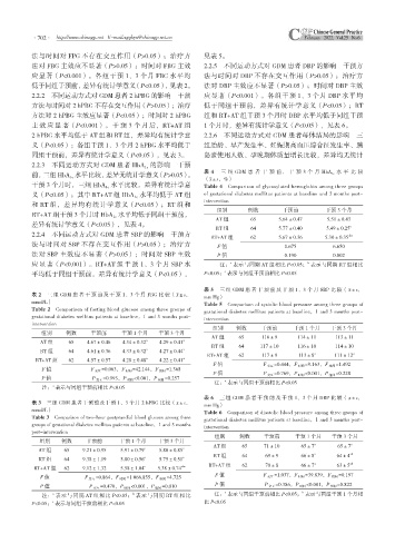 前,三组 HbA 1c 水平比较,差异无统计学意义(P>0.05)。 表 4 三组 GDM 患者干预前、干预 3 个月 HbA 1c 水平比较