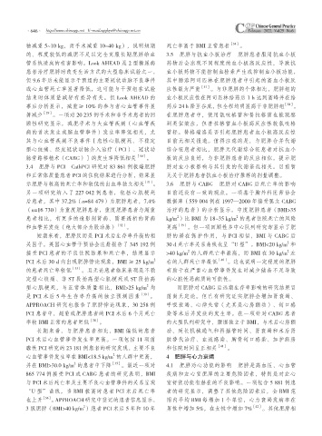PCI 术后 30 d 内出现肥胖悖论现象,BMI ≥ 25 kg/m 2 右的人群死亡率最低 [40] 。这也说明一定程度的肥胖
