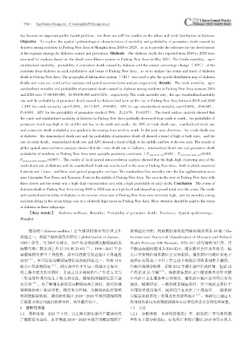 【Key words】 Diabetes mellitus;Mortality;Probability of premature death;Tendency;Spatial epidemiology;