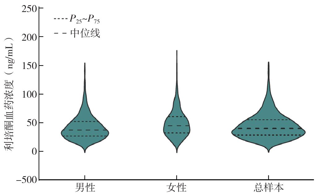 摘要: 背景 利培酮作为一种抗精神病药,被广泛应用于精神分裂症及其他精神障碍疾病的治疗。虽然国内外通过治疗药物监测(TDM)技术监测利培酮血药浓度已多年,但性别、年龄的差异对其血药浓度结果的影响尚未达成共识。 目的 通过收集利培酮TDM数据,分析不同就诊类型、性别、年龄患者利培酮TDM在不同治疗窗的分布情况及对利培酮血药浓度的影响,为服用利培酮治疗的精神分裂症等精神疾病患者提供用药参考。 方法 基于医院信息检索系统,收集2022—2024年中山市第三人民医院进行利培酮TDM的门诊及住院患者的年龄、性别、血药浓度数据、监测频次、监测例数等基本信息。根据2017年神经精神药理学与药物精神病学协会(AGNP)《神经精神药理学治疗药物监测共识指南》推荐的利培酮治疗窗范围(<20 ng/mL为低于治疗窗,20~60 ng/mL为治疗窗内,>60 ng/mL为高于治疗窗)进行分类统计,比较不同年份、就诊类型、年龄段、性别患者利培酮TDM在不同治疗窗的分布情况及对利培酮血药浓度的影响。数据分析使用SPSS 29.0,图形绘制使用Origin Pro 2021。 结果 本研究共纳入2 583例患者,共计监测4 879次,其中女性监测1 738次,男性监测3 141次。2022—2024年利培酮TDM监测次数比较,2023年与2022年监测次数相比增加了28.61%,2024年与2022年监测次数相比增加了71.31%,逐年升高。在2 583例监测患者中,接受1次监测的门诊患者比例高于住院患者(χ2=115.48,P<0.001);接受2次、3次及以上监测的住院患者比例高于门诊患者(χ2=7.22,P=0.007;χ2=102.68,P<0.001)。门诊患者和住院患者的利培酮血药浓度比较,差异无统计学意义(Z=-1.254,P=0.210);男性患者的利培酮血药浓度低于女性患者(Z=-11.540,P<0.001);不同年龄段患者利培酮血药浓度比较,差异有统计学意义(H=36.560,P<0.001)。2022—2024年利培酮TDM在治疗窗内监测3 445次(70.61%),低于治疗窗监测471次(9.65%),高于治疗窗监测963次(19.74%),治疗窗内监测比例高于其他两个治疗窗的监测比例,差异有统计学意义(χ2=3 772.19、2 548.73,P<0.001)。2022—2024年利培酮TDM在低于治疗窗、治疗窗内、高于治疗窗的监测血药浓度比较,差异有统计学意义(H=1 465.03,P<0.001)。不同年份、不同年龄段、不同性别患者利培酮TDM在低于治疗窗、治疗窗内、高于治疗窗的监测比例比较,差异均有统计学意义(P<0.001)。男性、女性及总体样本利培酮TDM的监测血药浓度分别为37.4(26.7,52.3)ng/mL、45.3(32.4,60.9)ng/mL、40.2(28.6,55.6)ng/mL,结果均在20~60 ng/mL范围内,与AGNP共识推荐的利培酮治疗窗(20~60 ng/mL)一致。 结论 在临床工作中,应考虑性别、年龄差异对利培酮TDM的影响,实施利培酮个体化治疗,以提升血药浓度在治疗窗内的占比,同时重视利培酮TDM在门诊及住院患者治疗中的应用,为临床用药的安全、有效提供保障。