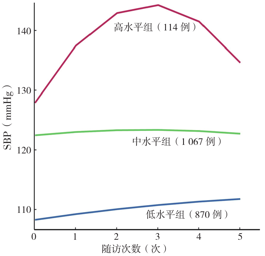 A total of 2 051 subjects who participated in health check-ups in Urumqi City, Xinjiang Uygur Autonomous Region from July 2019 to September 2021 were selected as study subjects, with baseline information collected. The dynamic changes of SBP and new-onset hypertension status were collected every 12 months at the Health Management Center of the First Affiliated Hospital of Xinjiang Medical University. Group-based trajectory modeling (GBTM) was used to determine the optimal number of trajectories for SBP among the subjects, grouping them based on SBP change trajectories. Restricted cubic spline (RCS) analysis was conducted to examine the potential dose-response relationship between BMI and SBP trajectories under different weight statuses and metabolic features. Multivariate Logistic regression analysis was employed to explore the impact of weight status and its metabolic characteristics on SBP change trajectories.