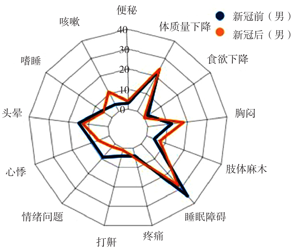 图2 新冠前后男性乏力患者合并症状