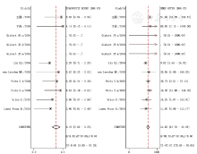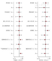 背景在消化性溃疡出血(PUB)患者中,抑酸药物的使用以及出血状态等会对幽门螺杆菌(H.pylori)感染的诊断造成干扰,关于尿素呼气试验(UBT)和粪便抗原检测(SAT)应用于出血患者的诊断准确性报道并不一致。 目的明确UBT和SAT用于PUB患者H.pylori感染的准确性。 方法计算机检索PubMed、EMBase、the Cochrane Library、Web of Science、中国知网、万方数据知识服务平台、中国生物医学文献服务系统(CBM),收集有关PUB患者运用UBT和/或SAT诊断H.pylori感染的诊断准确性试验,检索时间为建库至2021-03-31。提取资料并应用QUADAS-2工具进行文献质量评价;运用双变量混合效应模型和网络Meta分析模型(NMA)合并诊断试验效应量;采用Meta回归和亚组分析的方法探究异质性的来源。 结果共纳入18篇文献,总计25项研究,包含1 105例患者。Meta分析结果显示,UBT、SAT诊断PUB患者H.pylori感染的合并灵敏度为0.90〔95%CI(0.79,0.95)〕、0.89〔95%CI(0.81,0.94)〕,合并特异度为0.91〔95%CI(0.86,0.95)〕、0.75〔95%CI(0.59,0.87)〕,合并诊断比值比为88.89〔95%CI(31.01,254.82)〕、24.35〔95%CI(13.76,43.09)〕,合并阳性似然比为10.07〔95%CI(6.07,16.71)〕、3.60〔95%CI(2.11,6.12)〕,合并阴性似然比为0.11〔95%CI(0.05,0.24)〕、0.15〔95%CI(0.09,0.24)〕,综合受试者工作特征(SROC)曲线下面积为0.93〔95%CI(0.90,0.95)〕、0.91〔95%CI(0.88,0.93)〕。Meta回归提示,取样时间对UBT和SAT的灵敏度异质性存在影响,取样时间和H.pylori感染判定标准对UBT的合并特异度异质性存在影响。Deek漏斗图提示纳入研究间不存在潜在发表偏倚(PUBT=0.53,PSAT=0.64)。 结论UBT具有更好地发现PUB患者H.pylori感染的能力,对疾病诊断的帮助优于SAT。鉴于SAT的假阳性结果,针对PUB患者不推荐单独使用SAT,同时依据取样时间与诊断效能的负相关性,为尽量避免质子泵抑制剂对检测结果的影响,推荐血流动力学稳定条件下尽早完善H.pylori相关检测。