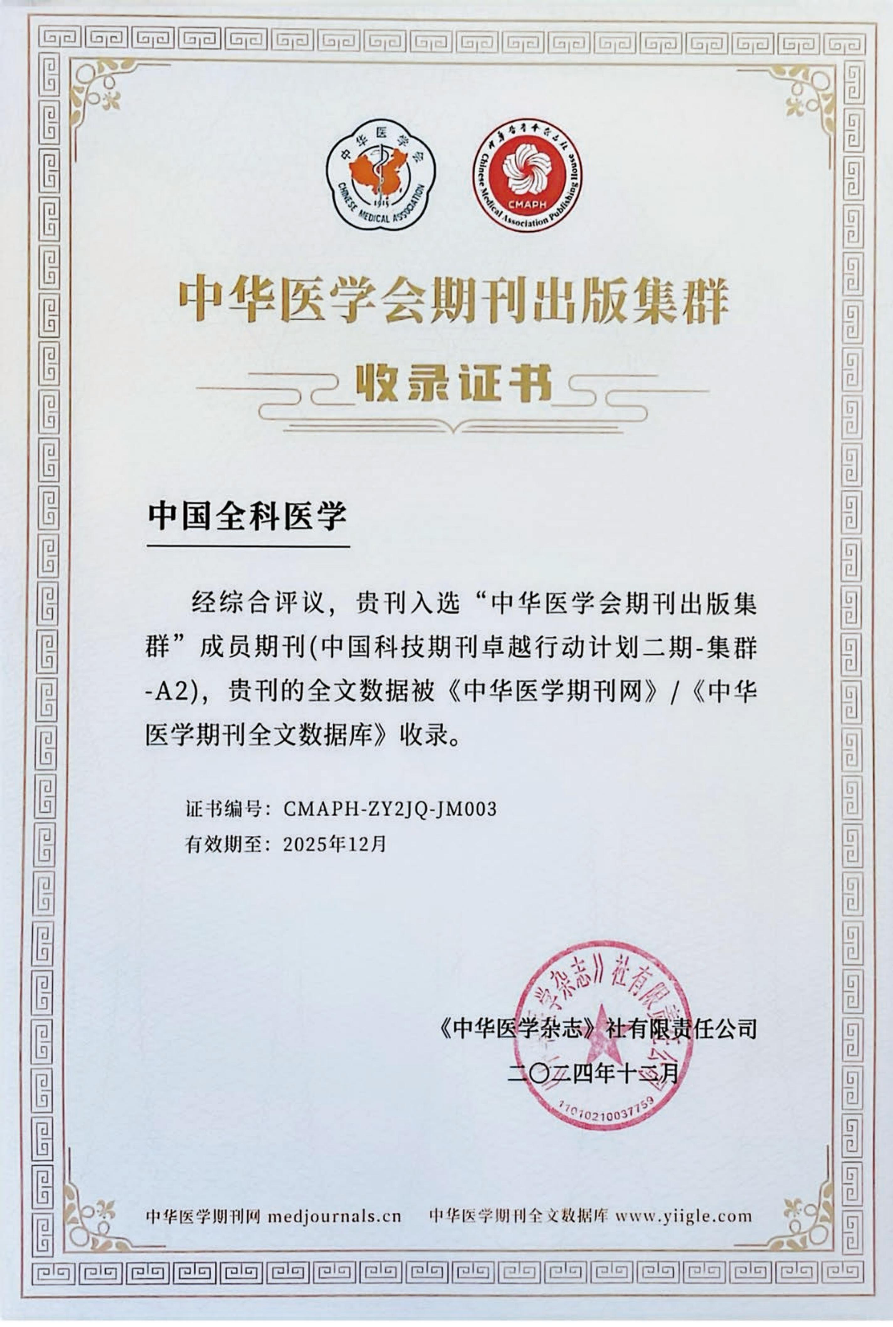 2025年《中国全科医学》杂志核心总被引频次、综合评价总分在43种临床医学综合类核心期刊中继续排在第一名