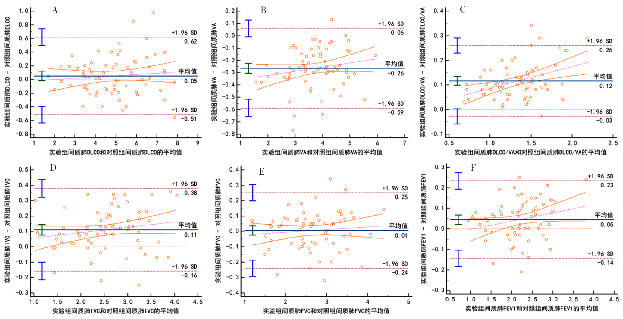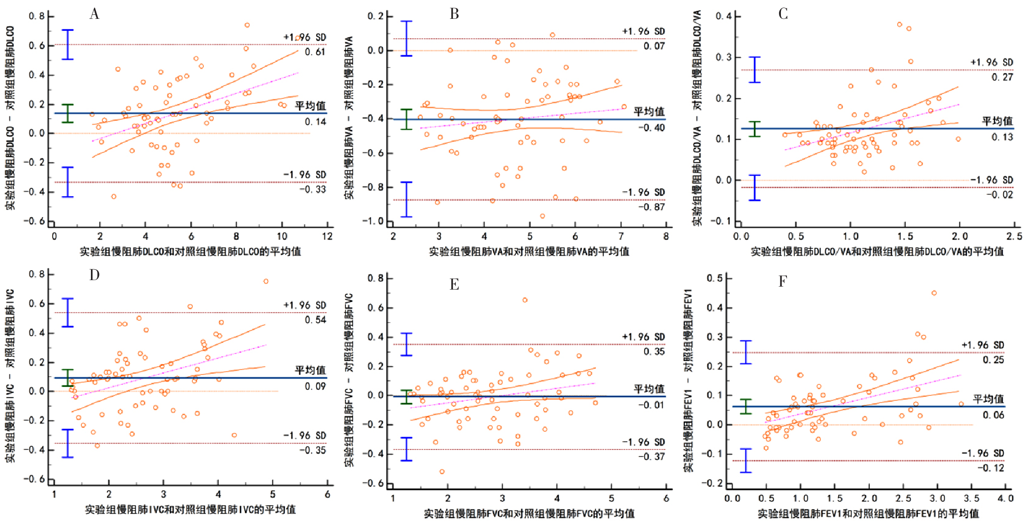 | DLCO/VA | 0.920 9 | 0.083 1~0.979 5 | 一致性较高 | <0.001 |
