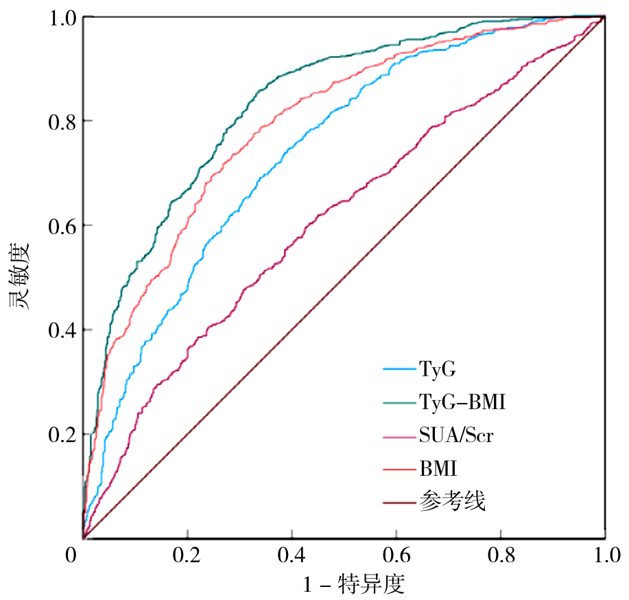 Table 2 Predictive value of TyG,BMI,SUA/Scr,and TyG-BMI for T2DM combined with MAFLD