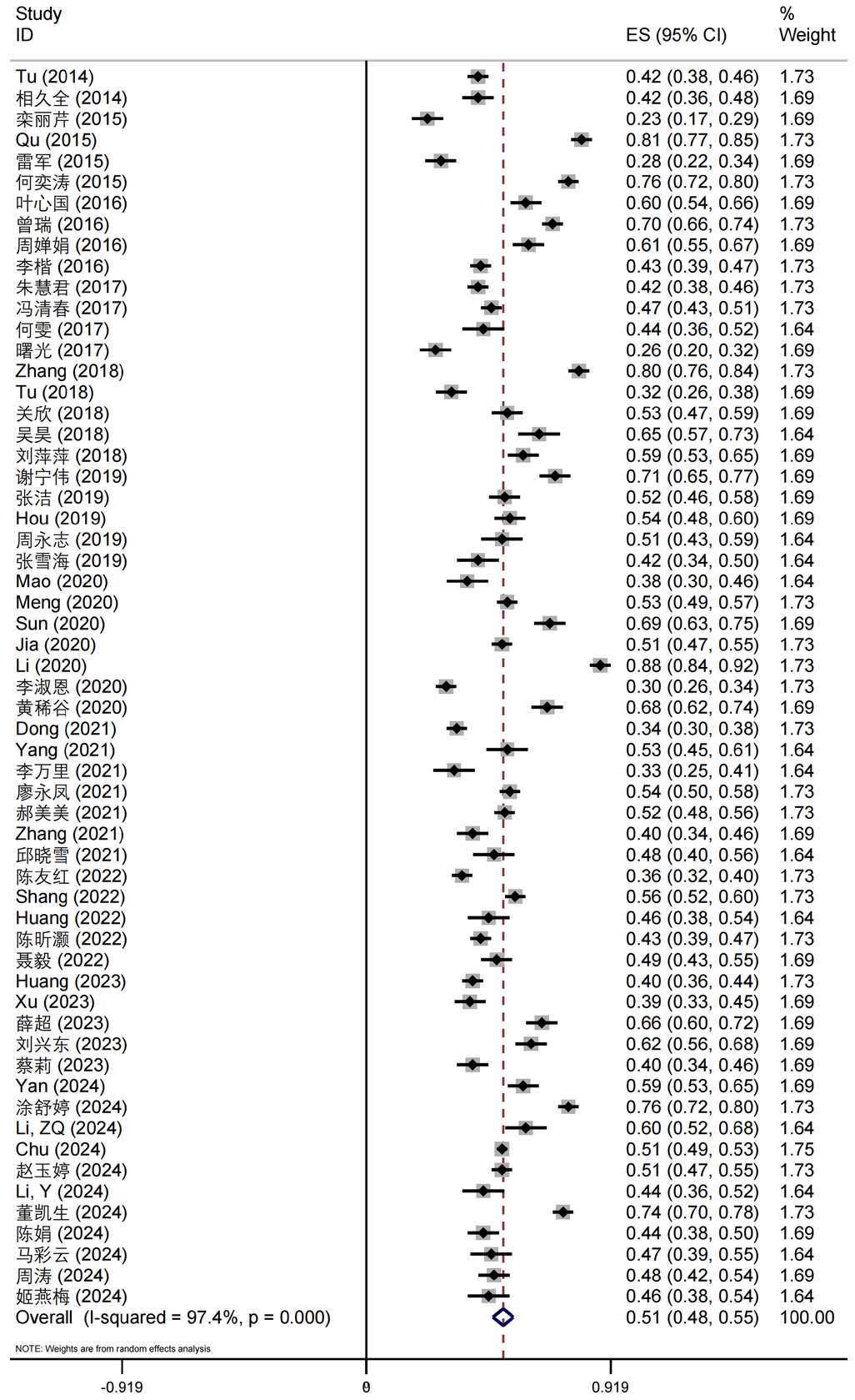 | 廖永凤[ | 2021 | 广西壮族自治区 | 缺血性 | 924 | 496 | MoCA | 横断面研究 | 7 |