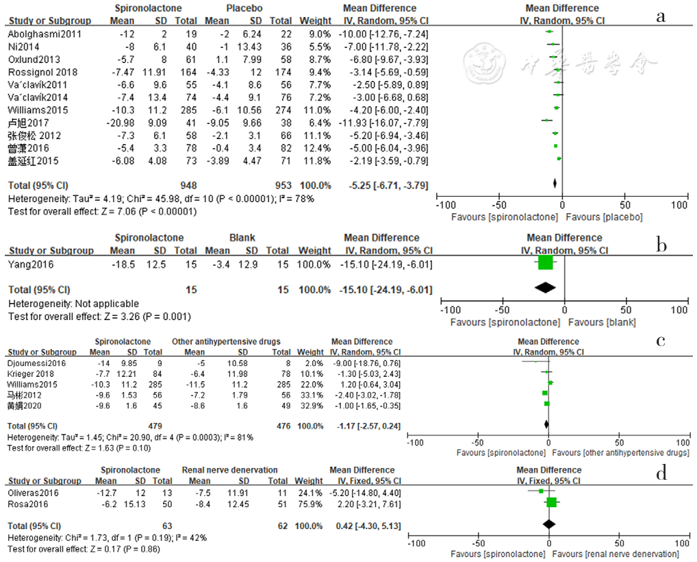 醛固酮受体拮抗剂螺内酯治疗难治性高血压疗效和安全性的Meta分析 |