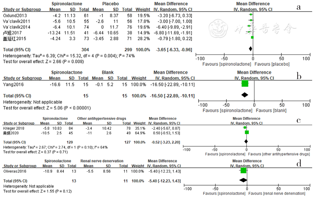 醛固酮受体拮抗剂螺内酯治疗难治性高血压疗效和安全性的Meta分析 |