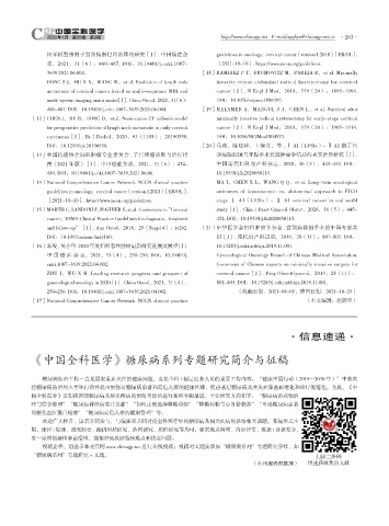 and follow-up”[J]. Ann Oncol,2018,29(Suppl 4):iv262. [21]中华医学会妇科肿瘤学分会 . 宫颈癌微创手术的中国专家共