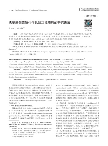 郭双辉,张玉梅 . 肌萎缩侧索硬化伴认知功能障碍的研究进展[J]. 中国全科医学,2022,25(12):1524-1528. [www.