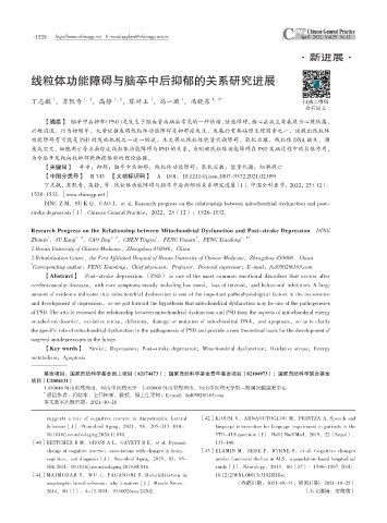 丁志敏,苏凯奇,高静,等 . 线粒体功能障碍与脑卒中后抑郁的关系研究进展[J]. 中国全科医学,2022,25(12):