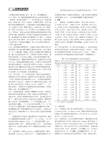 以下指标则表明模型拟合合理 [24] :(1)χ /df<3;(2)近 2.3.2 结构效度 在 524 例研究对象中,随机抽取 280 例