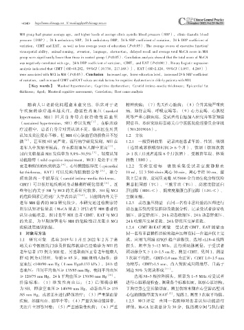 认知功能状态,探讨老年 MH 患者 CIMT、EAT 与 MCI 缩压、诊室舒张压、24 h 动态收缩压、24 h 动态舒张压、